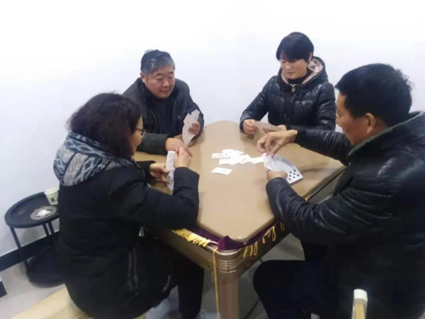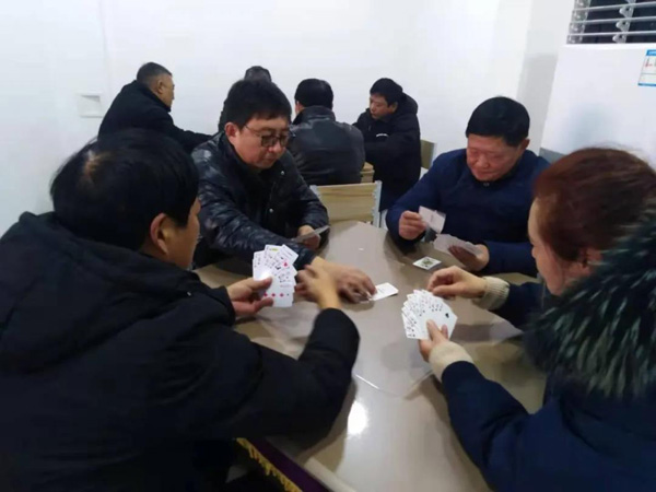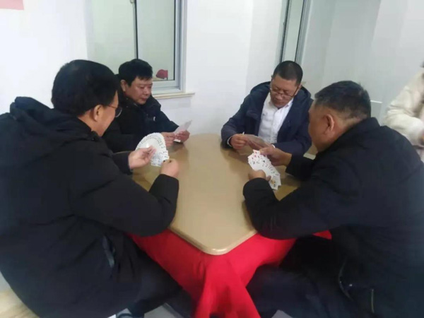 元月2日下午,江苏省海安市高新区二里社区居家养老服务中心内,气氛热烈。南通春雨保安服务有限公司工会庆元旦职工掼蛋友谊赛正在这里举行。