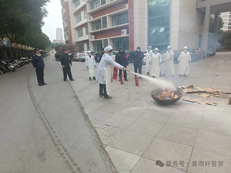 在火灾模拟过程中,保安人员迅速到达火灾现场,启动应急广播系统引导全体人员进行疏散;餐饮部员工也立即关闭厨房设备,按流程疏散到安全区域。灭火器的使用、紧急疏散、火场救援等环节一一落实,整个演练过程紧张而有序,充分考验了参演人员的消防应急能力。通过本次消防安全演练,春雨集团不仅加强了保安团队和餐饮部员工的安全防范意识,更强化了应急反应能力。集团负责人表示,消防安全关系到每个人的生命安全,集团将继续与海陵中学密切合作,定期开展各种安全演练和培训,确保校园内每一位师生、员工都能够熟练掌握紧急应对技能,共同营造更加安全的校园环境。