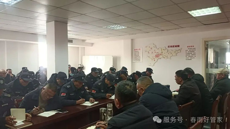 1月4日,集团在二楼会议室召开了2025年第一次班队长例会。会议主要传达了两项重要精神: 一、春节期间的安全管理 会议强调,春节临近,各项安全工作必须严格落实。各班队长需加大巡查频次,杜绝脱岗、饮酒上岗等现象,确保门卫室用电安全。此外,要加强岗中及上下班途中安全管理,确保每位员工的生命安全。