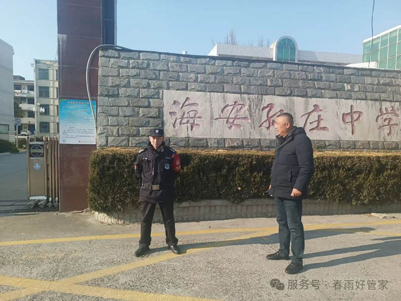 2025年2月13日(农历正月十六),南通春雨保安服务有限公司针对海安市100余所中小学、幼儿园以及南通崇川区10余所中小学开学首日安全需求,组织专项检查组深入校园一线,全面排查安全隐患,强化安保措施落实,为师生平安返校保驾护航。