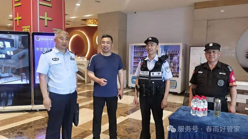 这份安静的背后,是春雨集团对高考安保工作的细致与投入。集团管理层深知责任重大,一早便带队赶到海安的两家酒店。从提醒安保人员放轻手脚,到与驻点民警沟通协调周边环境的管控细节,管理层的到来,更像是给一线安保员工们带来了一份踏实和肯定。