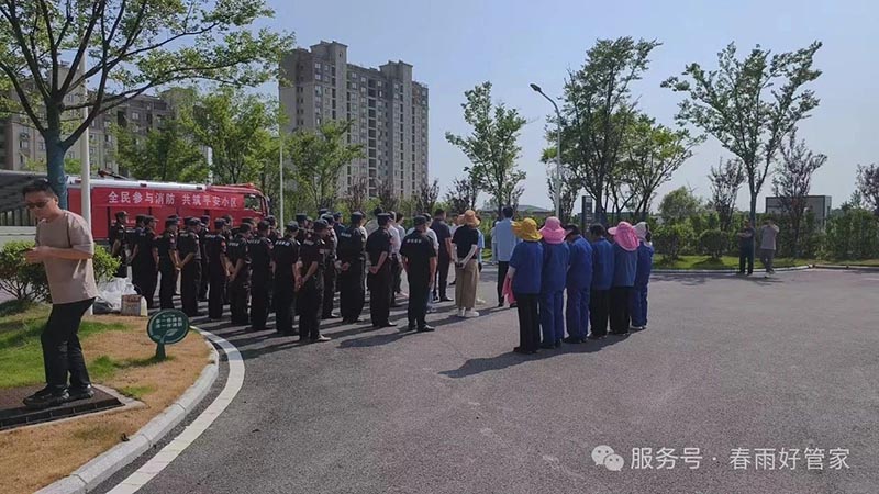 二、全员积极参与,共筑平安家园 本次活动得到了新城花苑小区居民和全体物业员工的热烈响应和积极参与。 (一)责任在肩,防范于未“燃” 物业安保作为小区安全的第一道防线,在演练中表现出了高度的专业素养和责任感。一位参加演练的保安队长表示:“通过这次演练,我们不仅巩固了消防技能,更强化了团队协作能力。我们有信心、有能力守护好我们美丽的家园。” (二)邻里携手,共筑“防火墙” 参与活动的居民深有感触地说:“这样的活动太有必要了!以前总觉得火灾离我们很远,今天才明白,很多隐患就在身边。学会了用灭火器,心里也踏实多了。”正如活动横幅“全民参与消防、共筑平安小区”所倡导的,小区的安全需要每一位居住者的共同努力。 此次消防演练活动的成功举办,不仅检验了春雨集团服务团队应对突发事件的组织协调能力,更在广大业主心中播下了“人人关注消防、人人参与消防”的种子。 |
