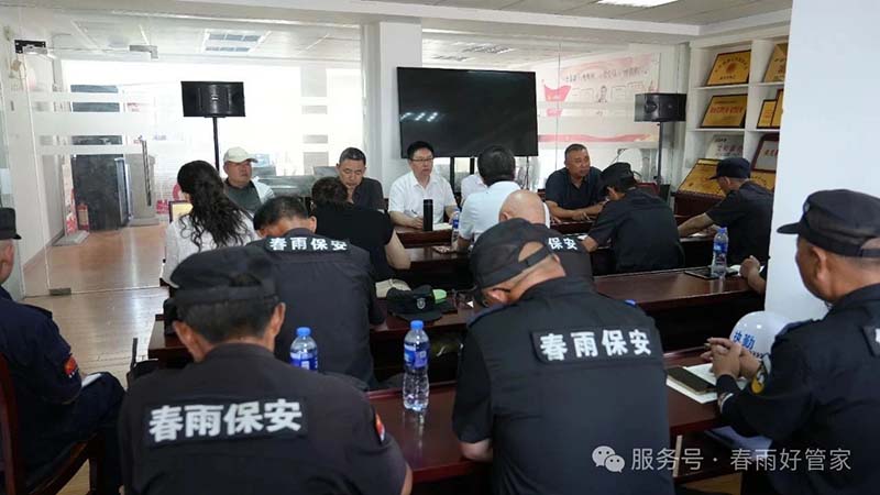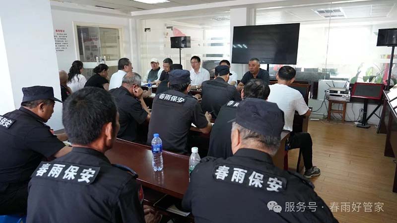 2025年7月5日,南通春雨集团在公司二楼会议室组织召开了7月月度例会,参会人员包括各项目保安队长、保洁班长以及项目负责人。尽管当天高温炎热,参会人员仍准时到场,会议现场秩序井然、氛围严肃。