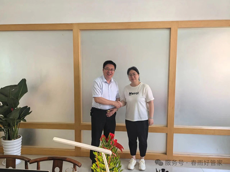 在项目交接会上,张进董事长与社区周枫书记、马振华主任进行了深入友好的交流。双方就项目未来服务的具体细节、标准交换了意见,并顺利完成了各项交接手续。社区领导对春雨集团的品牌实力表示认可,并对团队的到来表示热烈欢迎。